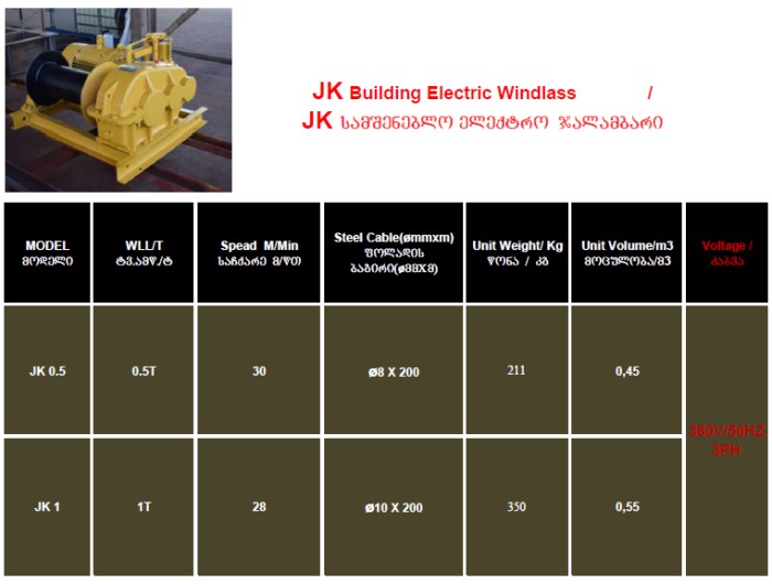 JK სამშენებლო ელექტრო ჯალამბარი (0.5÷1ტ)