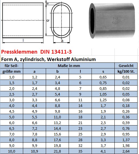 DIN 13411-3 ალუმინის შითაგული ბაგირისთვის